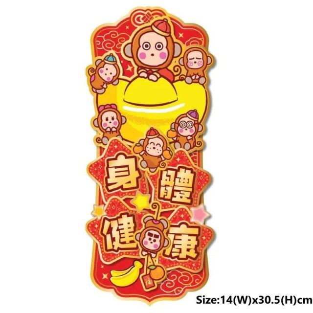 Sanrio Osaru No Monkichi 港版 2026年 賀年 直款 紅色 揮春 (身體健康) (立體造型)