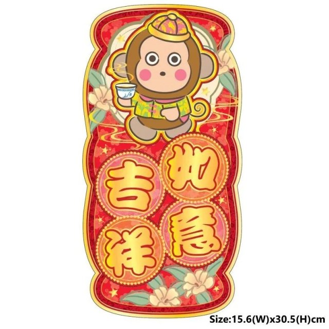 Sanrio Osaru No Monkichi 港版 2026年 賀年 直款 紅色 揮春 (如意吉祥) (立體造型)