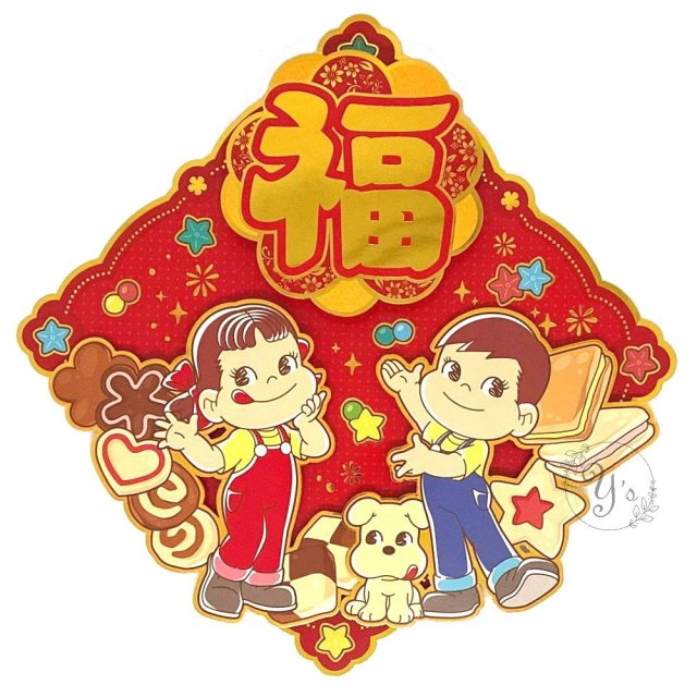不二家 牛奶妹 牛奶仔 港版 2026年 賀年 菱形 福字 揮春 (立體造型)
