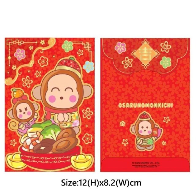 Sanrio Osaru No Monkichi 港版 2026年 賀年 長方形 紅色 利是封 8.2x12cm (10個裝)