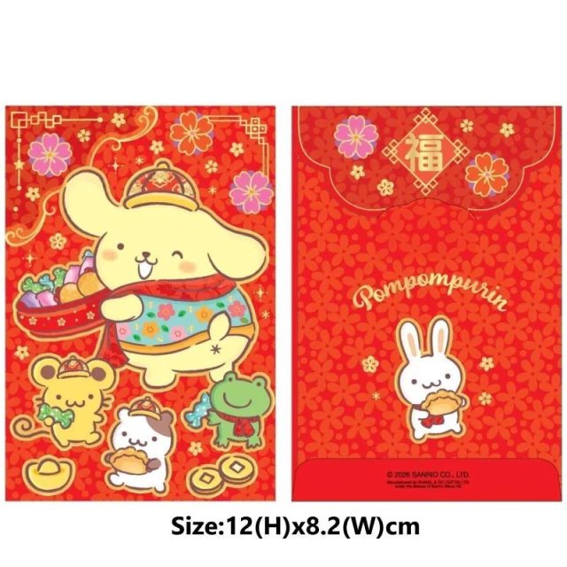 Sanrio Pompompurin 港版 2026年 賀年 長方形 紅色 利是封 8.2x12cm (10個裝)