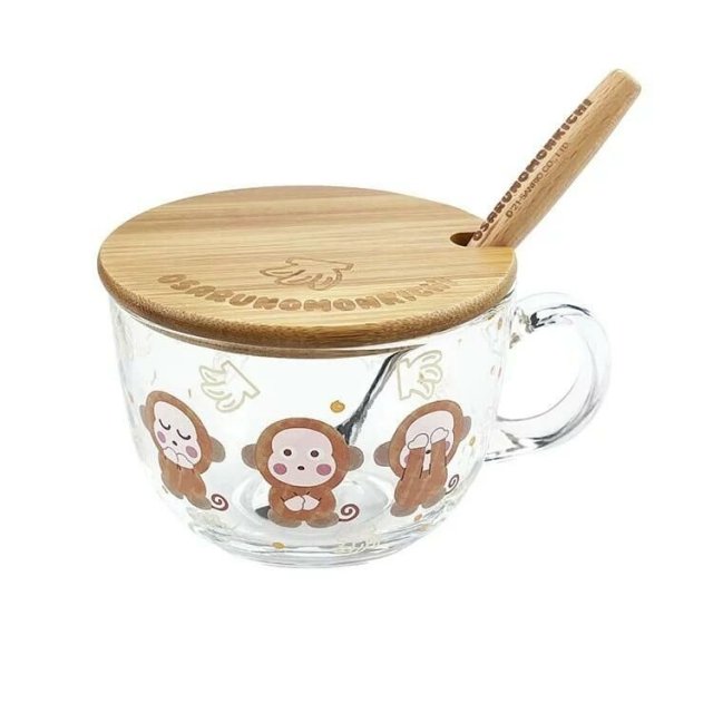 Sanrio Osaru No Monkichi Global版 木蓋 玻璃杯 連不鏽鋼匙羹 (2022 Monkichi 生日系列)