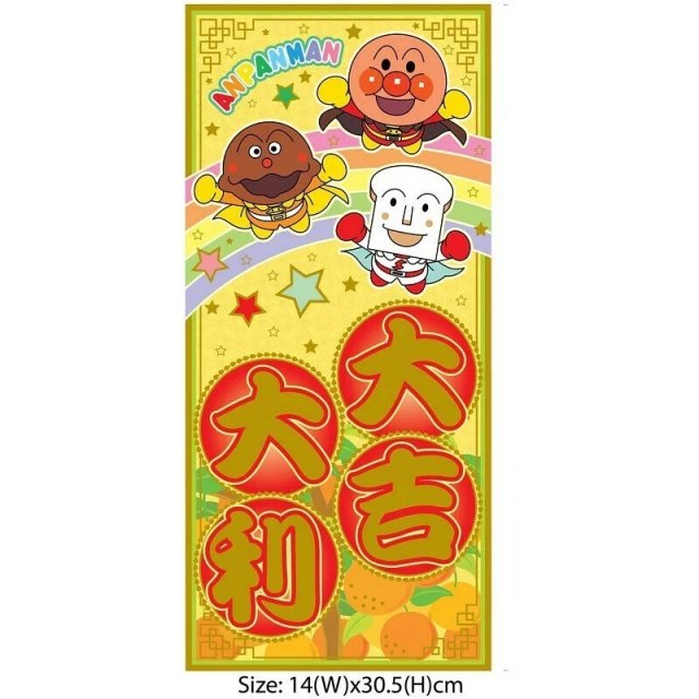 麵包超人 港版 2023年 賀年 直款 長方形 金色 揮春 (大吉大利)