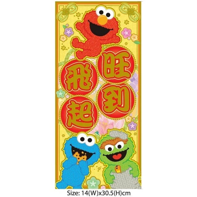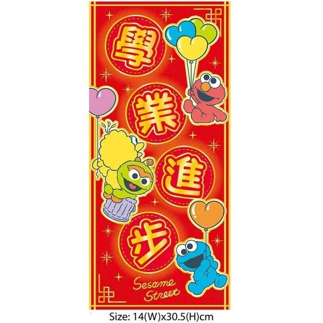 芝麻街 港版 2023年 賀年 直款 長方形 紅色 揮春 (學業進步)