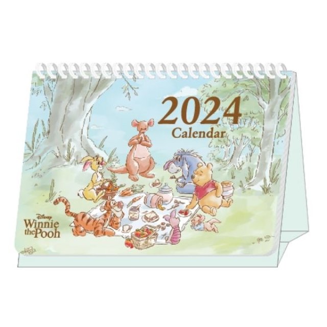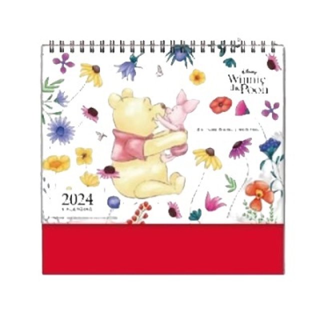 Disney Winnie The Pooh Genuine 2024 L-Size Desk Calendar (Taiwan's Holiday) (Flowers Grass)