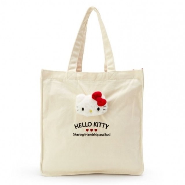 Sanrio Hello Kitty 日版 帆布 手挽袋 (2020 毛絨大頭系列)