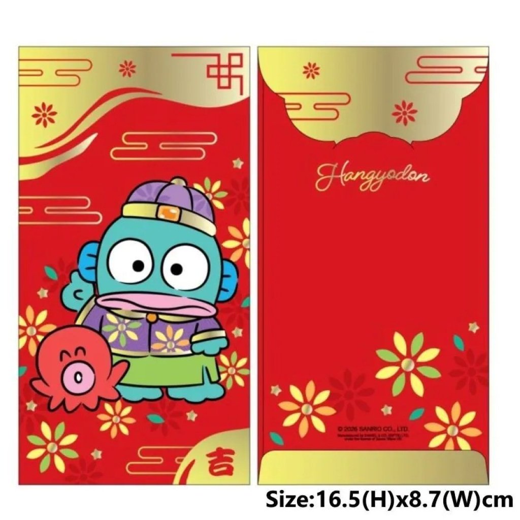 Sanrio Hangyodon 港版 2026年 賀年 長方形 紅色 利是封 8.7x16.5cm (8個裝)