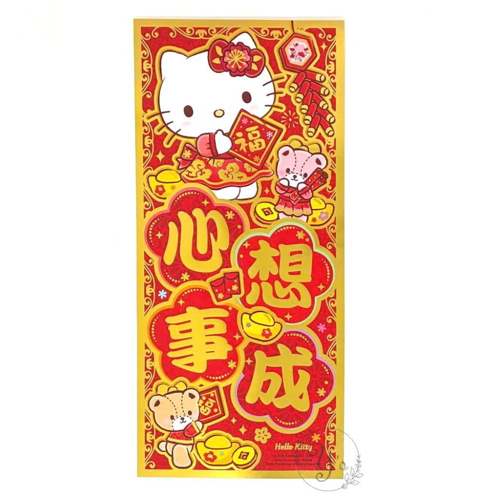 Sanrio Hello Kitty Hong Kong Version 2026 Lunar New Year Vertical Red Rectangular Wishes Fai Chun (心想事成)