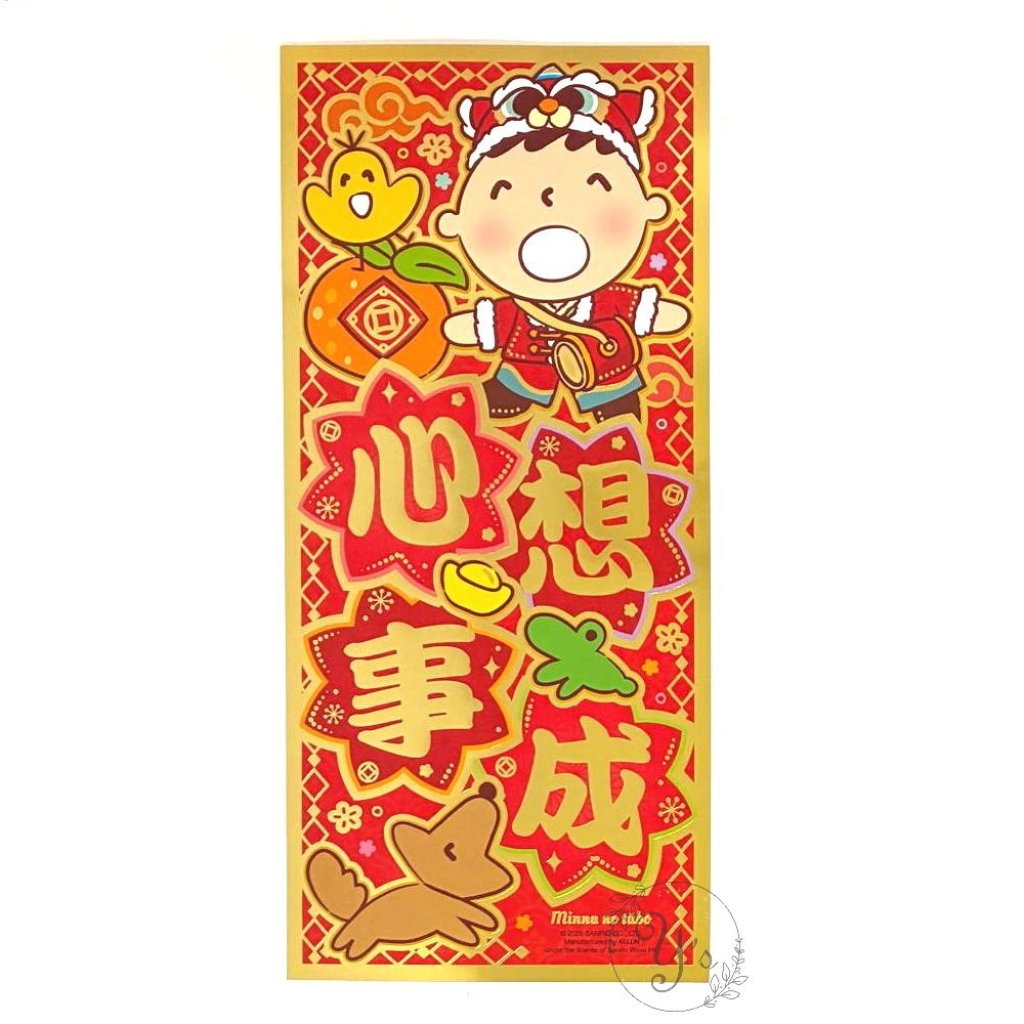 Sanrio Minna No Tabo 港版 2026年 賀年 直款 長方形 紅色 雙賀語 揮春 (心想事成)