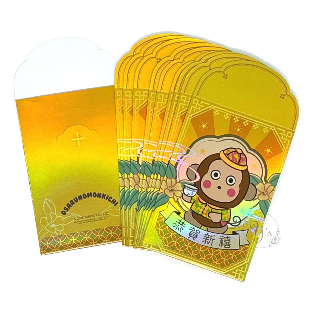 Sanrio Osaru No Monkichi 港版 2026年 賀年 金色 鐳射感 利是封 (10個裝)