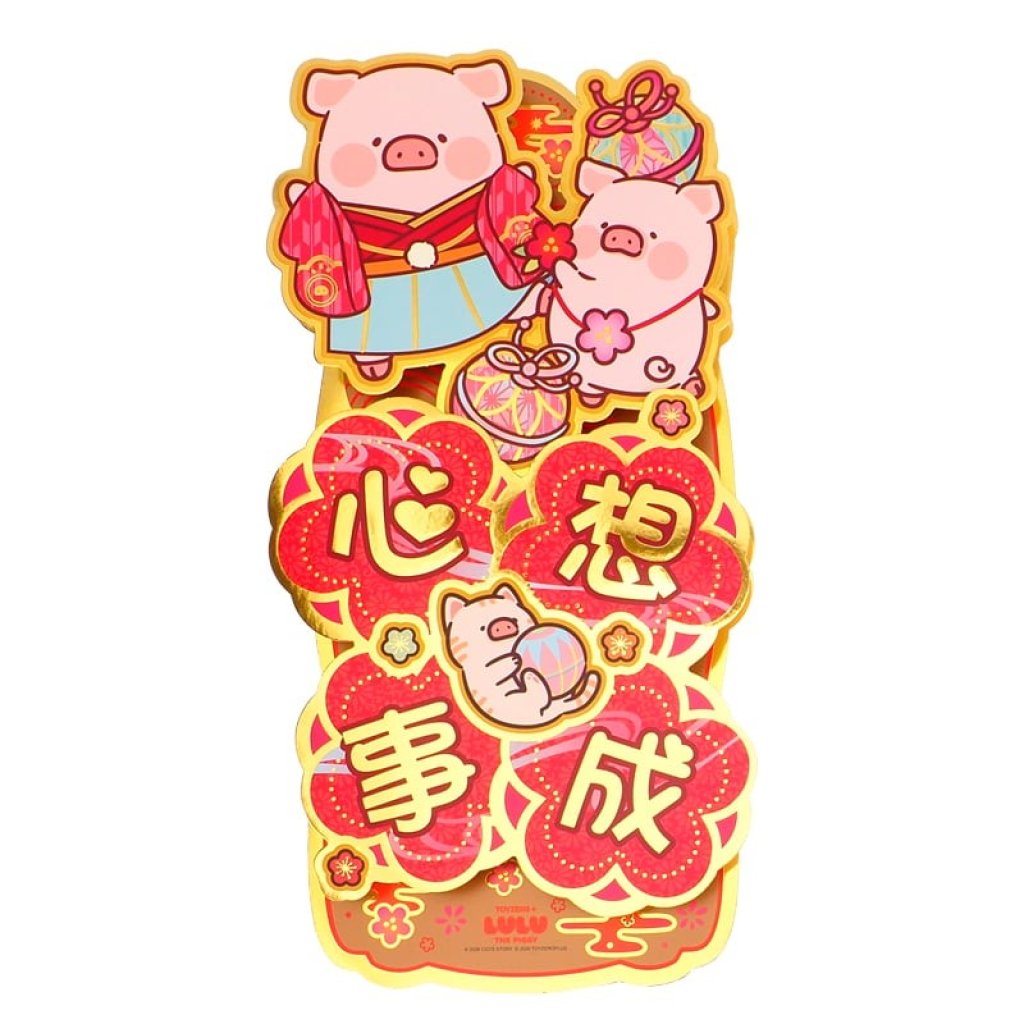 LuLu The Piggy 港版 2026年 賀年 直款 金色 雙賀語 揮春 (心想事成) (立體邆型)