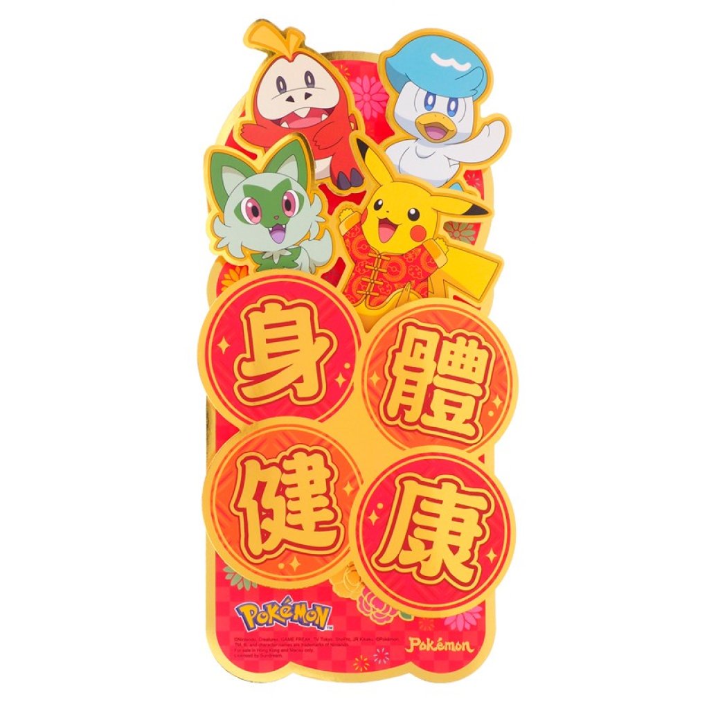 Pokemon 港版 2026年 賀年 直款 紅色 雙賀語 揮春 (身體健康) (立體邆型)