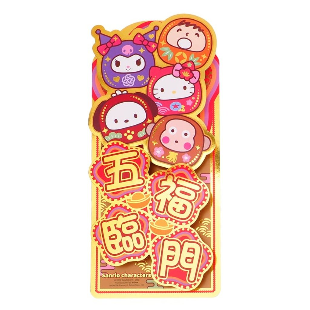 Sanrio Mix Characters 港版 2026年 賀年 直款 金色 雙賀語 揮春 (五福臨門) (立體造型)